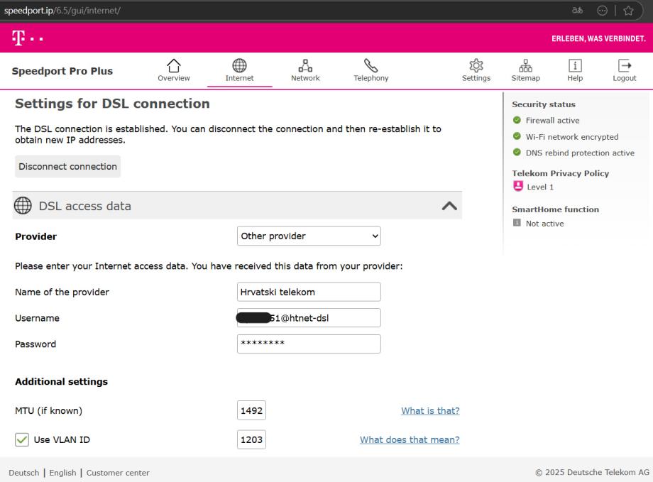 Korišten u Hrvatskoj 1 mjesec, spajan preko DSL kabela.