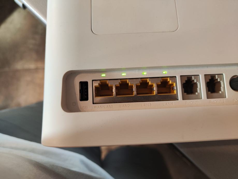 Router ima 4 LAN porta, svi su ispravni, ujedno postoji opcija dodavanja baterije u router za rad bez struje (bateriju nemam)