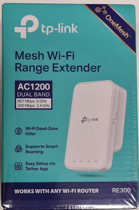 Pojačivač signala TP-LINK RE300, dual band AC1200 Mesh Wi-Fi range extender, 300 Mbps/867 Mbps (2.4 GHz/5 GHz)
