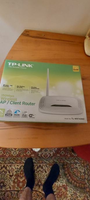 Tp-link wireless router...bijeli...veliki domet...s punjačem i internet kablovima...u original kutiji..star dvije godine....ispravan. 10eura...fiksno. Na poruke ne odgovaram. 095 508 4554. Velika Gorica. Preuzimanje kod mene doma. Ne cijenkam se i ne šaljem poštom.
