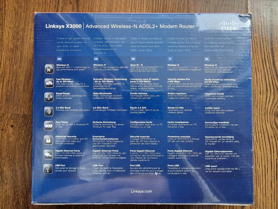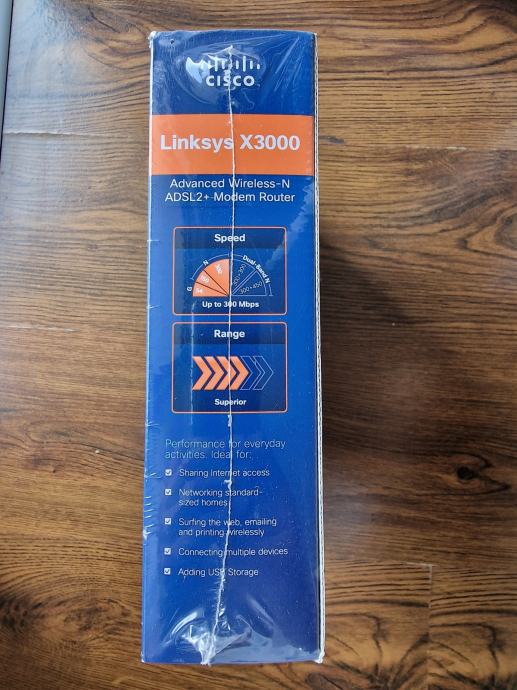 High-speed ADSL Wireless-N ADSL2+ modem router, Linksys X3000, novo.