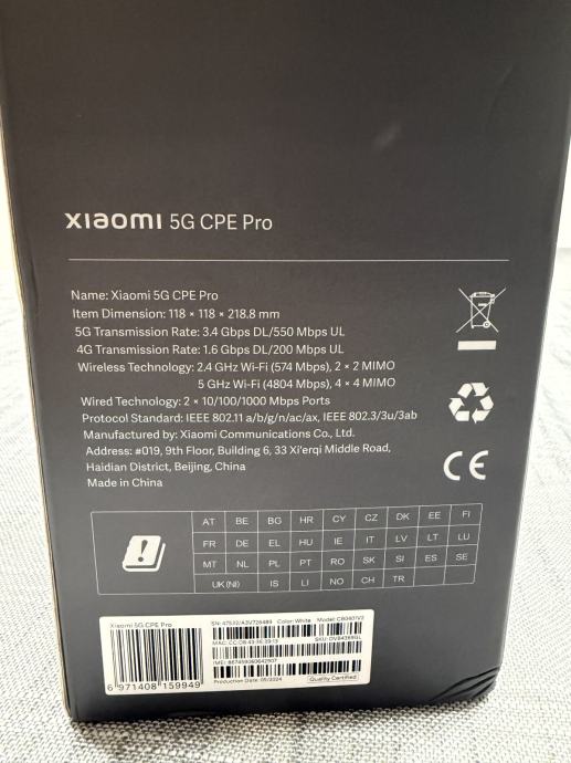 Xiaomi 5G CPE Pro Router, GARANCIJA