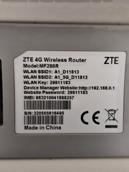 ZTE 4G Wireless Router Model: MF286R