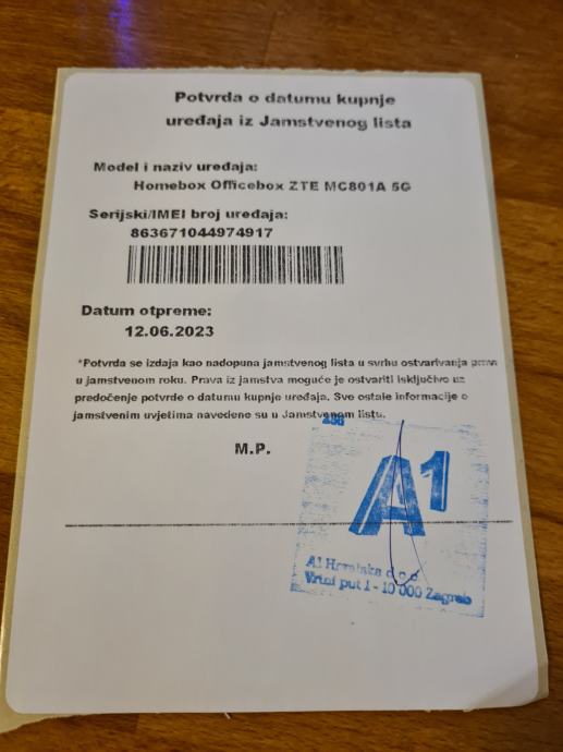 Uređaj je kupljen u 6/2023 od A1 operatera te ima garanciju do 6/2025.