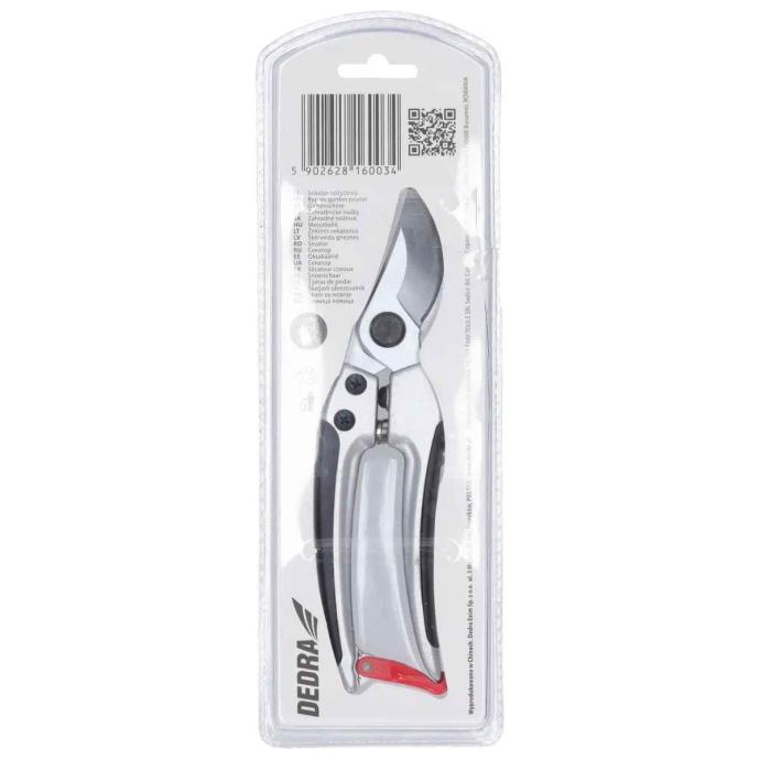 DEDRA 80A003 aluminijske vrtne škare za precizno orezivanje živih izdanaka, grana i cvijeća. Maksimalna debljina reza: 25 mm, ukupna duljina: 205 mm. Aluminijska ručka je lagana i čvrsta, a protuklizna obloga daje siguran hvat. Ugrađena blokada oštrice omogućuje sigurnije spremanje i nošenje. Idealne za vinogradarstvo, voćarstvo i redovno održavanje okućnice.✅ Najvažnije:✂️ Maks. rez: 25 mm (žive grane) Duljina: 205 mm Materijal: aluminij + čelik Blokada oštrice: DA.Šaljemo proizvode u cijelu Hrvatsku dostavnim službama. Izdajemo E-račun tvrtkama. Jamstvo i servis osigurani. Posjetite naš webshop www.vidam.hr