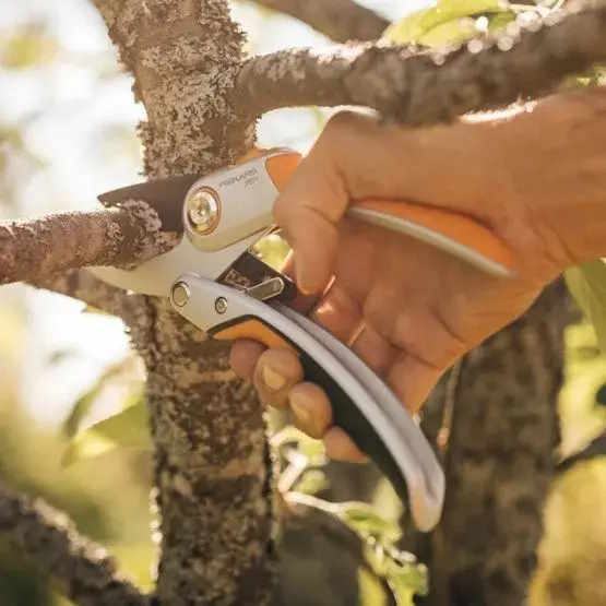 ErgonomskE Fiskars® X-series™ vrtne škare s račnom P971 (1057176) spajaju snagu s nizom lakih stiska za maksimalnu snagu rezanja uz malo napora