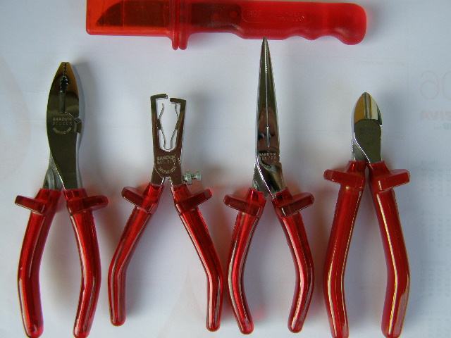 Sandvik - Belzer set 5-dijelova VDE električarska klješta, sjekaća, kombinirana, duga, za skidanje izolacije i nožić za