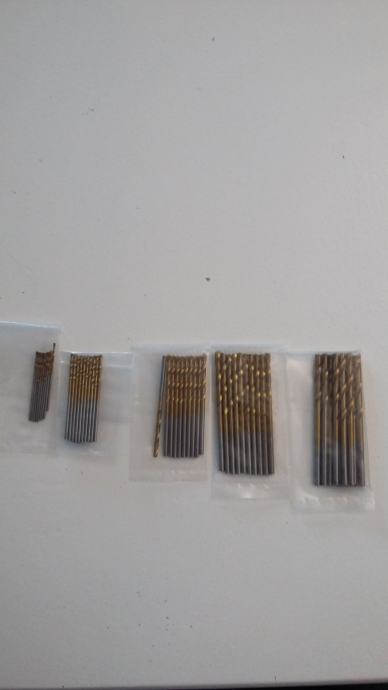 Boreri za željezo presvučeni sa titanijumom, pet dimenzija 1. 1, 5. 2. 2,5. 3mm ukupon 50 kom, imam dva kompleta i mogu ić za 10eu.