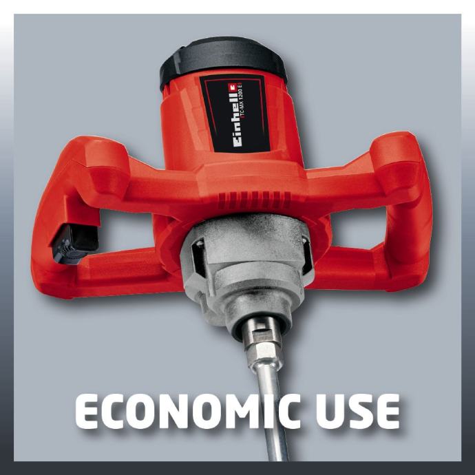 Einhell mješalica za boju i ljepilo TC-MX 1200 ima motor od 1200 W visokih performansi za odlične rezultate mješanja. Kompaktan uređaj s 1 brzinom za mješanje viskoznih materijala ima elektroničku kontrolu brzine za podešavanje alata prema materijalu kojeg mješate i time pruža idealne