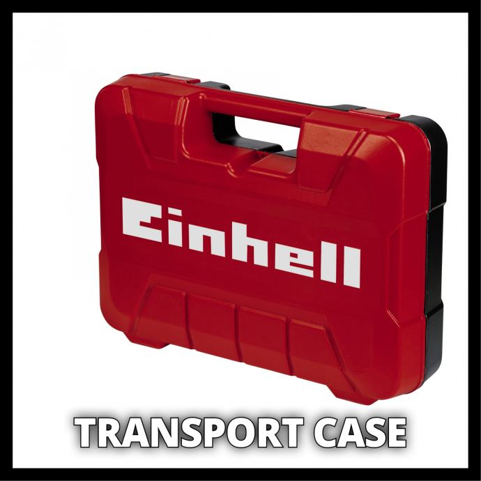 Einhell TC-PC 45 pneumatski čekić s odgovarajućim nastavkom moćan je pomagač pri poslovima rušenja i obnove u kući i izvan nje. Dizajniran je tako da isporučuje dosta snage za obradu kamena i metala. Za siguran rad ima integriranu gumiranu ručku. Šesterokutni osigurač sigurno drži dlijeto. Vrhunske performanse se postiže pomoću crijeva s unutarnjim promjerom od 9 mm ili više. Opsežni set sadrži 4-dijelni set dlijeta 120 mm, igle za obradu metala, 1 mala boca ulja, 1 brza spojnica i 1 zatezna opruga.Sve se isporučuje u praktičnom koferu.
