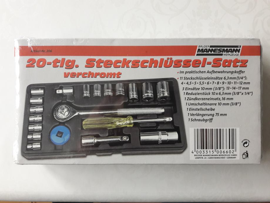 NOVO garnitura kromiranih gedora nasadnih ključeva 20-djelna MANNESMAN