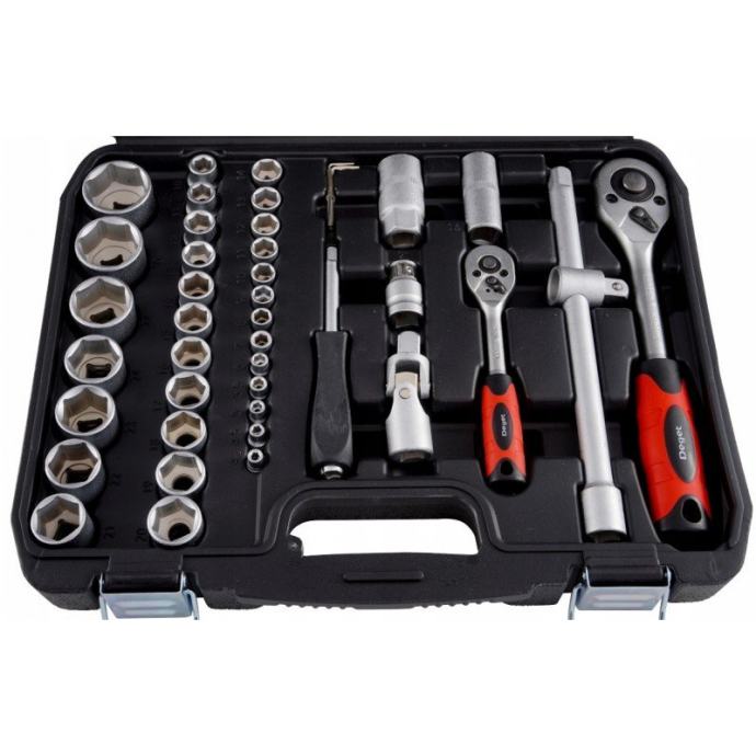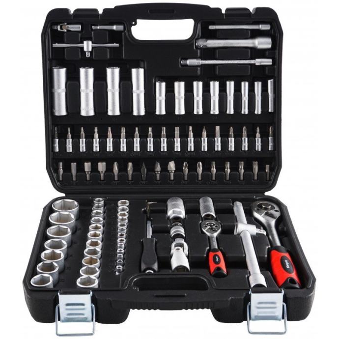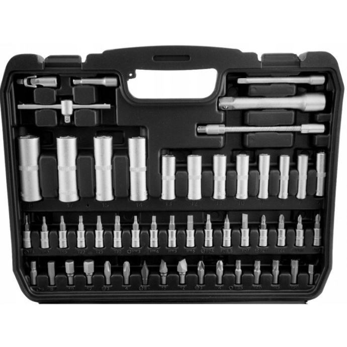 Set se sastoji od 94 elementa različitih veličina, što će omogućiti učinkovito izvođenje mnogih radioničkih radova. Ključevi nasadnih ključeva i pogon utičnica izrađeni su od izdržljivog alata od ugljičnog čelika, zahvaljujući kojem će dugo zadržati svoj izvorni izgled. Set omogućuje radove koji zahtijevaju vrlo velika opterećenja i preciznost, omogućuje obavljanje mnogih uslužnih aktivnosti vezanih za odvrtanje i zatezanje navojnih spojeva različitih nazivnih veličina.