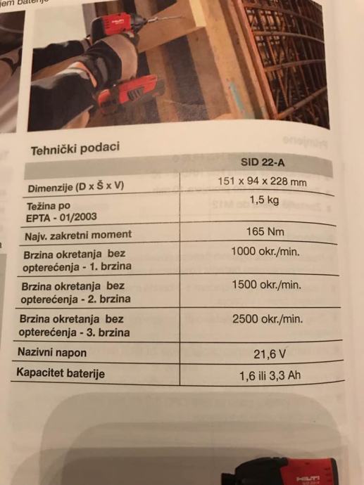 HILTI SID 22A Akumolatorski impulsni zavrtač