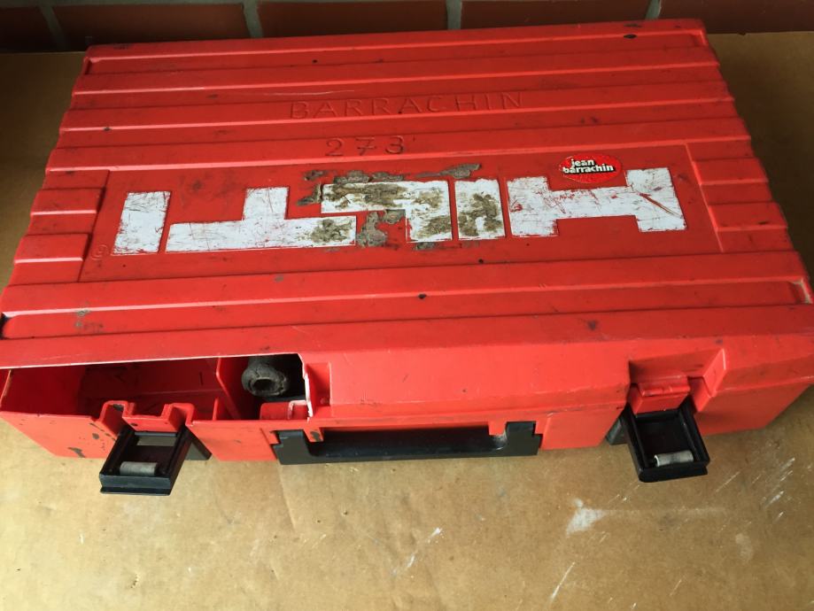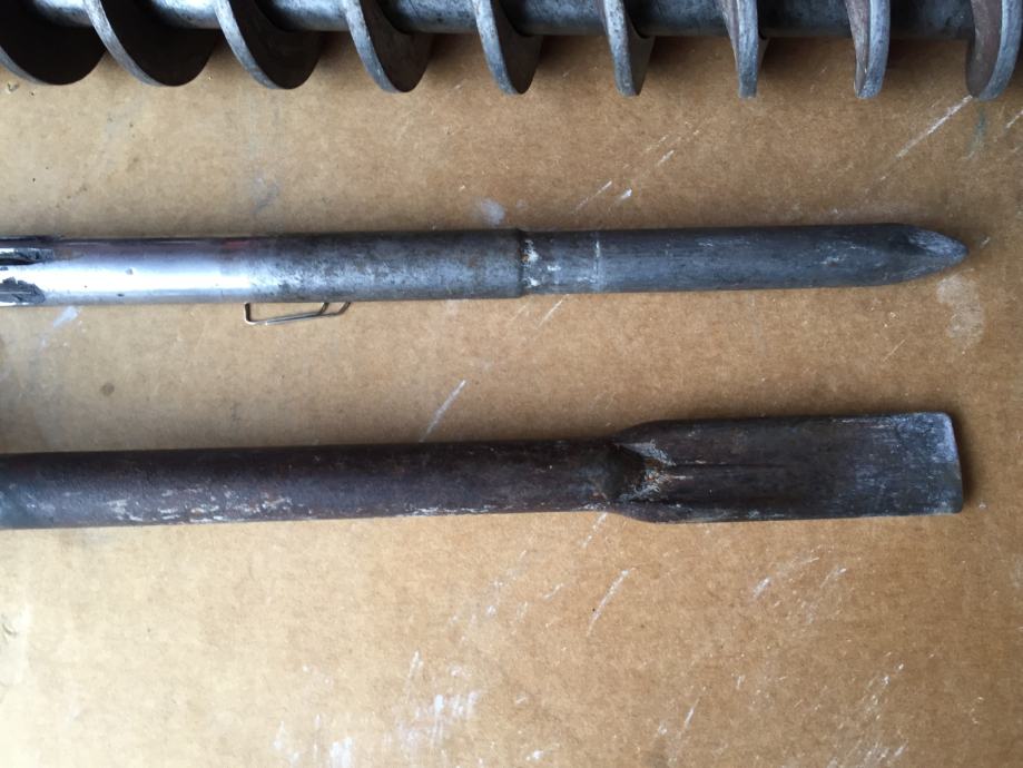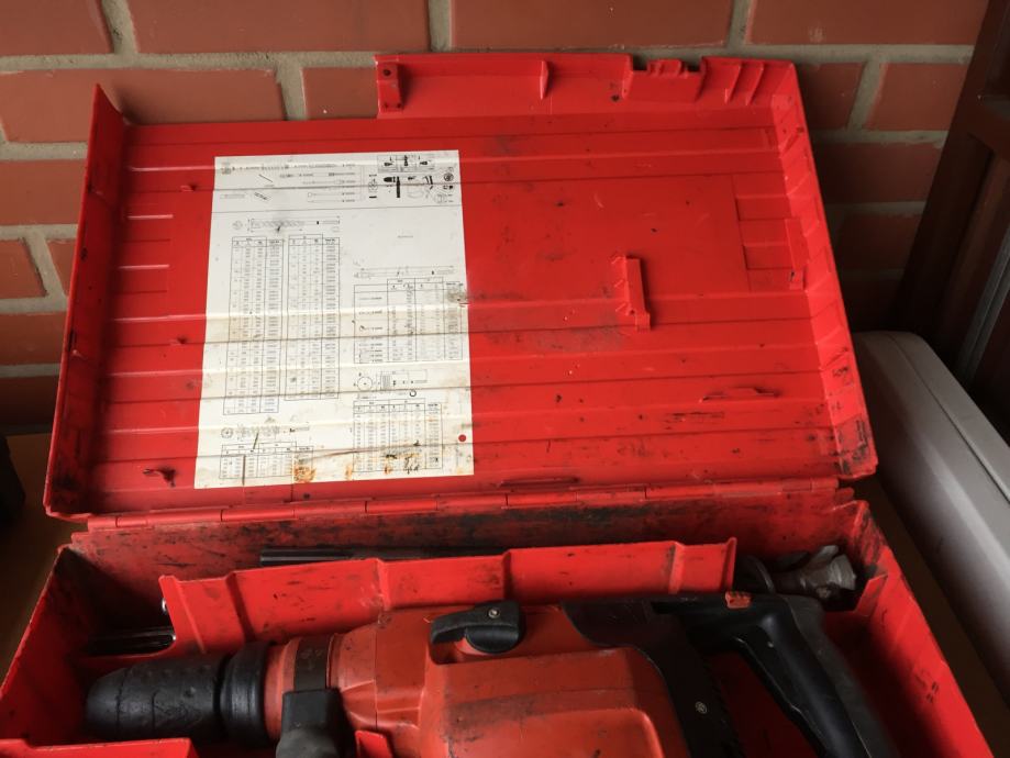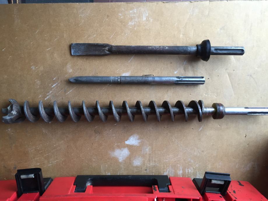 Uz bušilicu ide pribor za štemanje i svrdlo kojem je puknut jedan segment - vidljivo da slikama