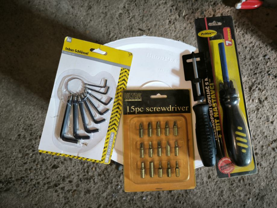 Prodaje se sve sa slika sve je novo i upakirano komplet 12komada sa priloženih slika jedan je teleskopski šarafciger komplet sa slika za samo 40€. Moze se osobno preuzeti ili poslati poštom.