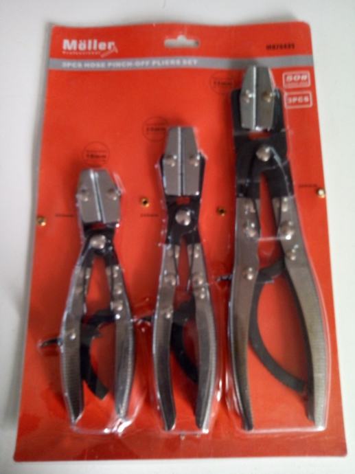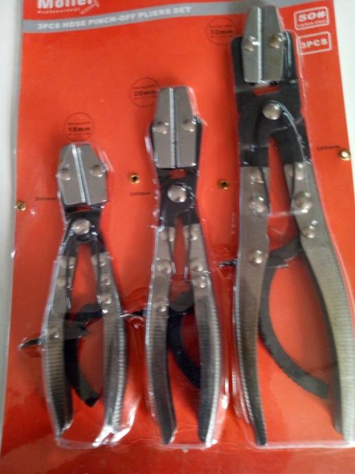 Prodam KLIJEŠTA sa malim ravnim zubima za raličite namjene kod mehaničarstva, limarskih radova za stiskanje limova i dr. poslovi. služe za zaustavljanje tekučina kod zaljene antifriza ,ulja uk.i dr.Prodam komplet za 370 kn.,a može i pojedinačno od 99 kn.najmanje pa 129 srednje i najveće za 159 kn.ili dogovor.Moguča dostava postom.
