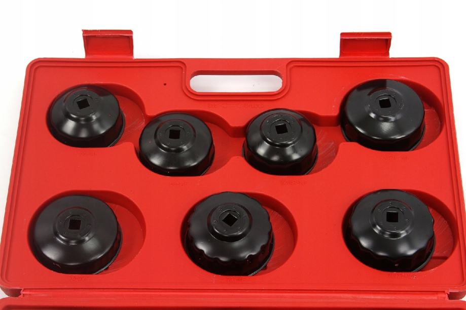 Set od 14 kapica za odvrtanje filtera za ulje. Odgovara većini osobnih automobila proizvedenih na europskom, američkom i azijskom tržištu. Čelični ključevi obloženi prahom.