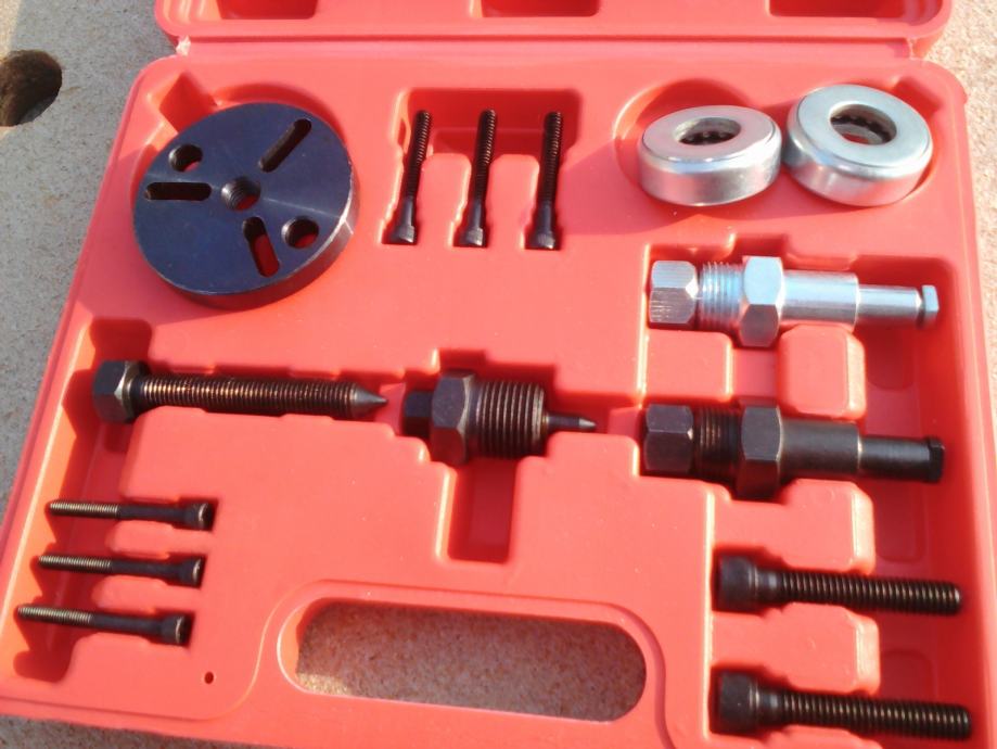 Prodajem novu garnituru alata u koferu za skidanje spojke i ležajeva na kompresoru auto klime . Sastoji se od raznih radapcigera za jednostavno odvajanje magneta .