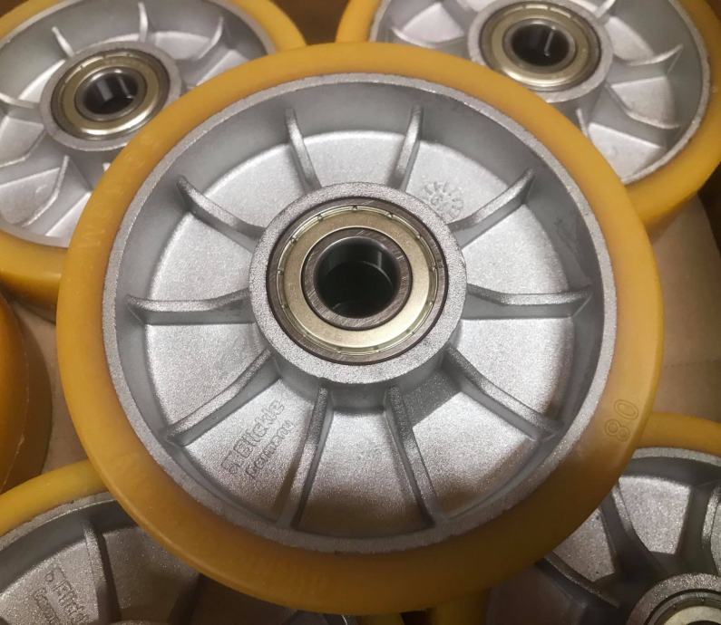 Kotač poliuretanski na ljevanoj AL felgi, promjer 200 mm, širina 50 mm, kuglični ležaji 20 mm,