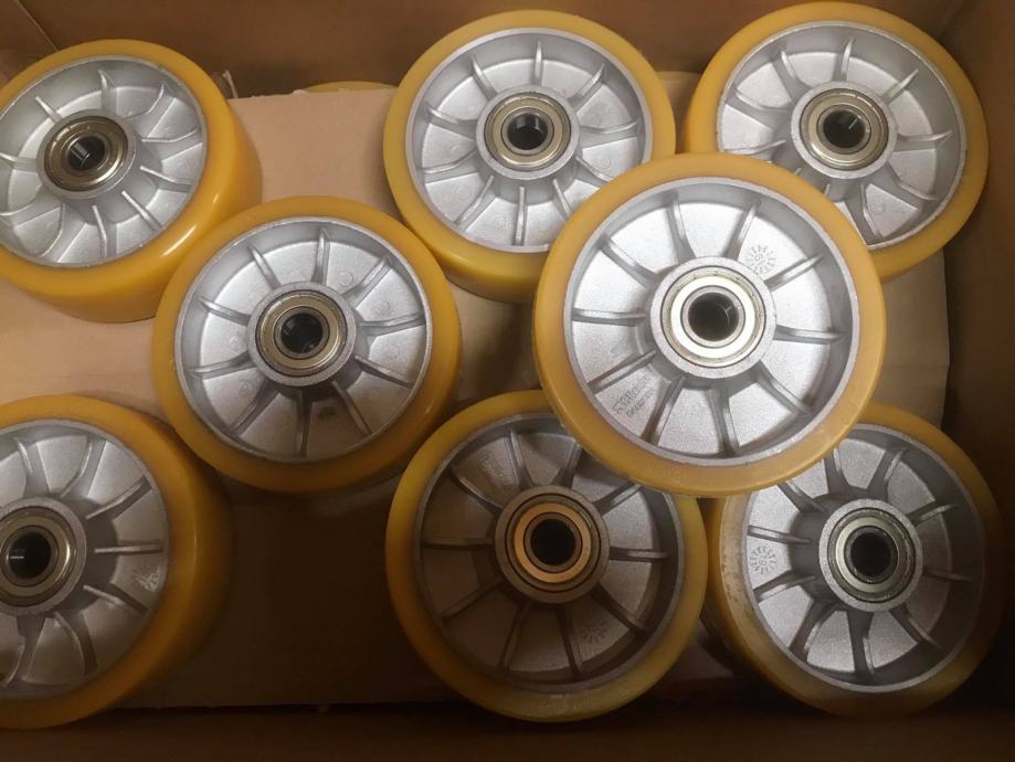 Kotač poliuretanski na ljevanoj AL felgi, promjer 160 mm, širina 50 mm, kuglični ležaji 20 mm,