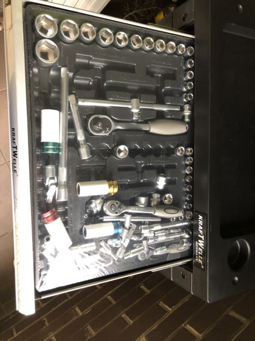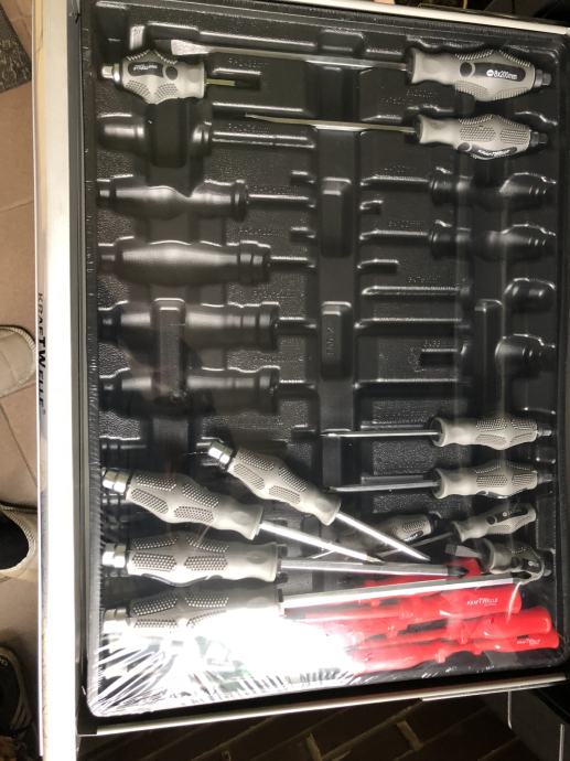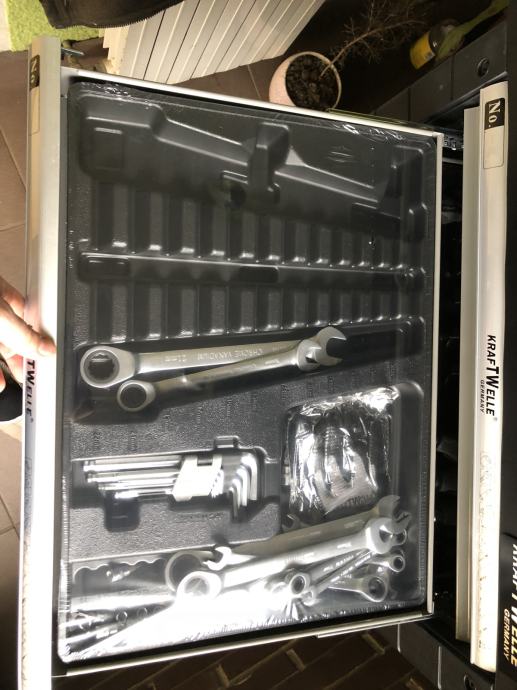 Prodajem kutiju sa alatom. Jos uvijek zapakirana. Sve vidljivo na slikama. To kaj je alat razmetani po kutiji to je radi transporta. Ima 7 ladica. 5 sa alatom i 2 velike prazne. Sve tip top. Za ozbiljnog kupca cijena nije fixna.