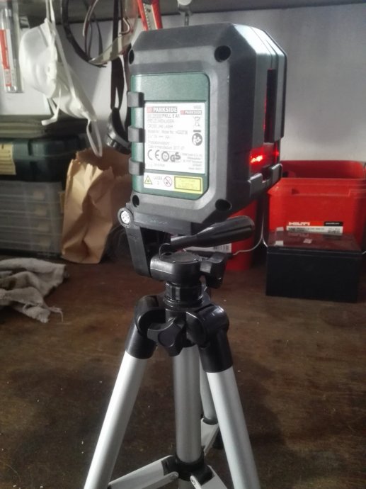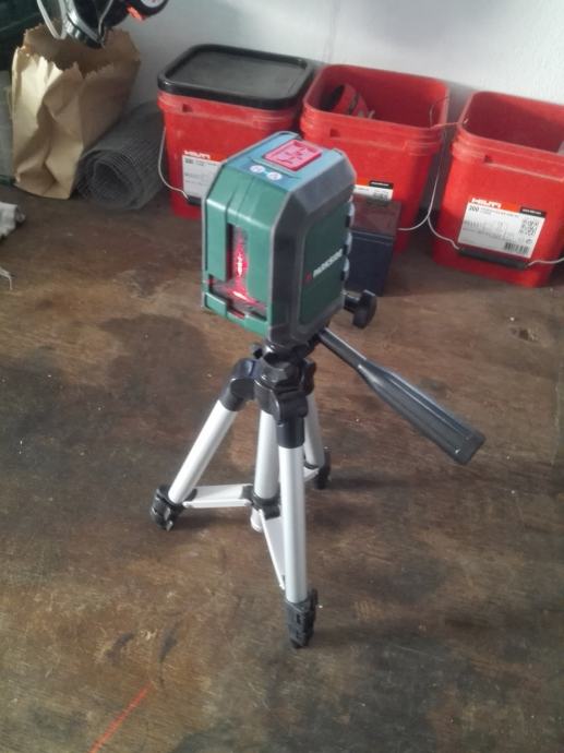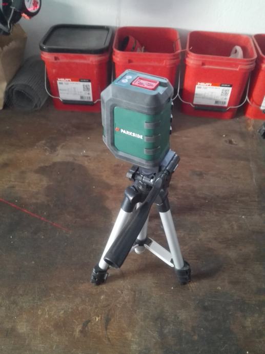 Laser posjeduje vertikalnu i horizontalnu liniju te aluminijski stativ.Sam se nivelira.Nekorišteno samo isprobano...