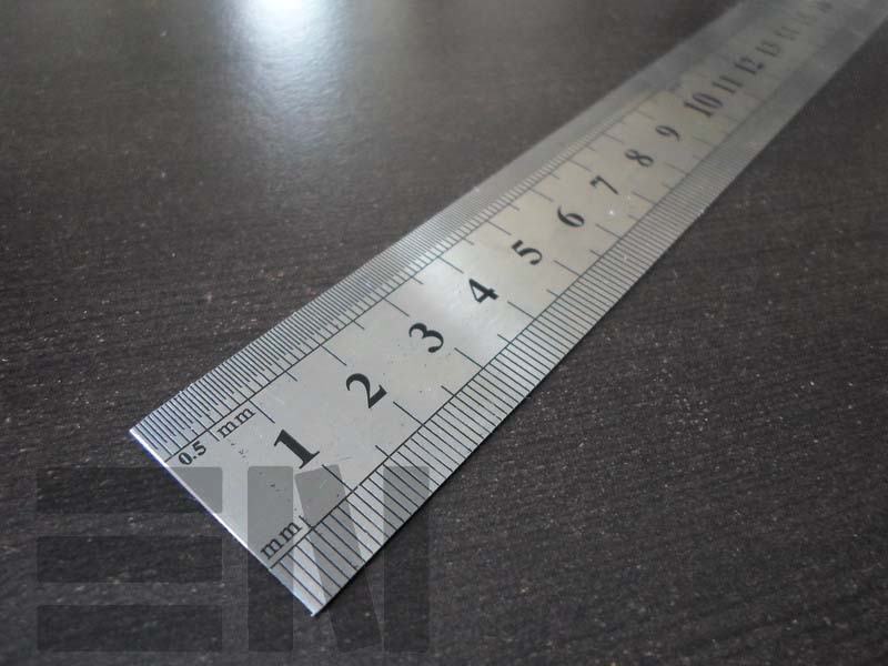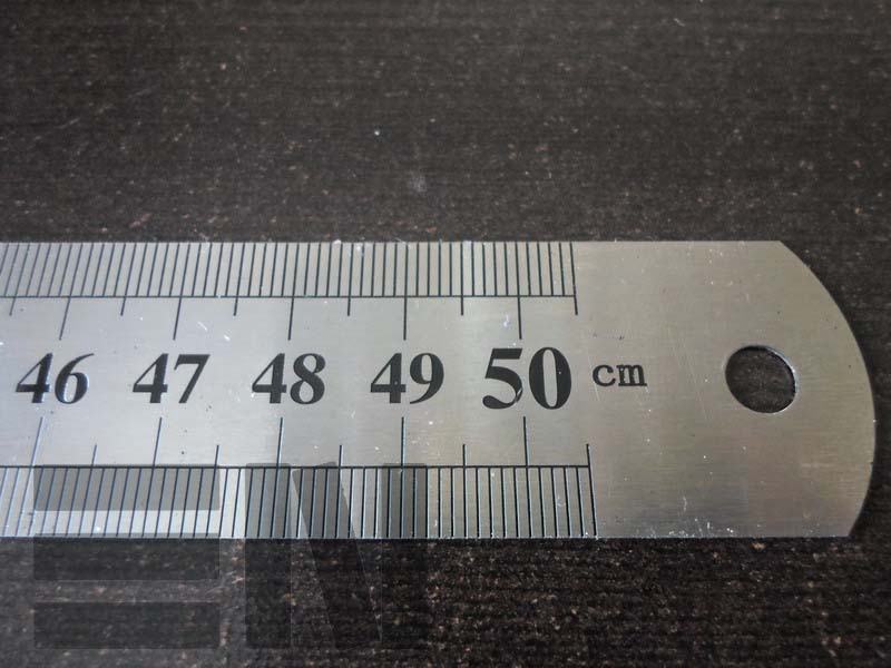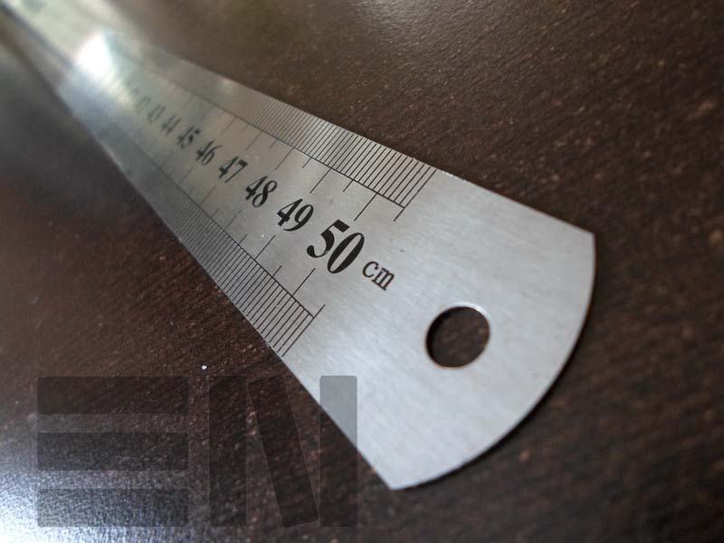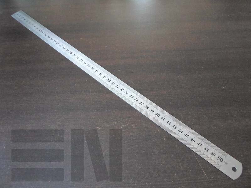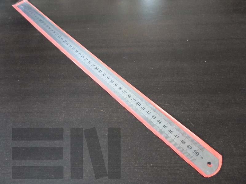 Metalno fleksibilno ravnalo dužine 50 cm. Skala s oznakama (cm,mm,0,5mm, INCH) započinje na samom rubu ravnala čime se olakšava upotreba skale koja je ugravirana zbog čega je otporna su brisanje.