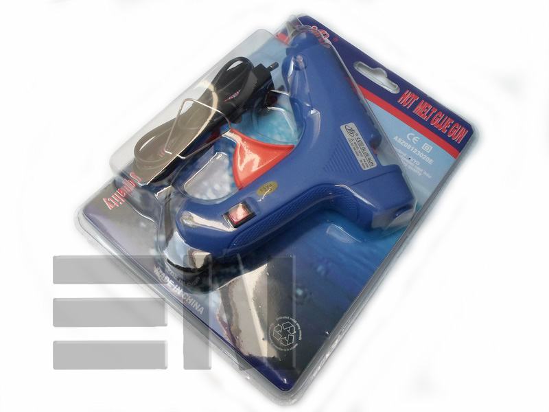 Pištolj za vruće lijepljenje jačine 60W 220V sa led kontrolnom lampicom i prekidačem. Štapići ljepila koje koristi ovaj pištolj su