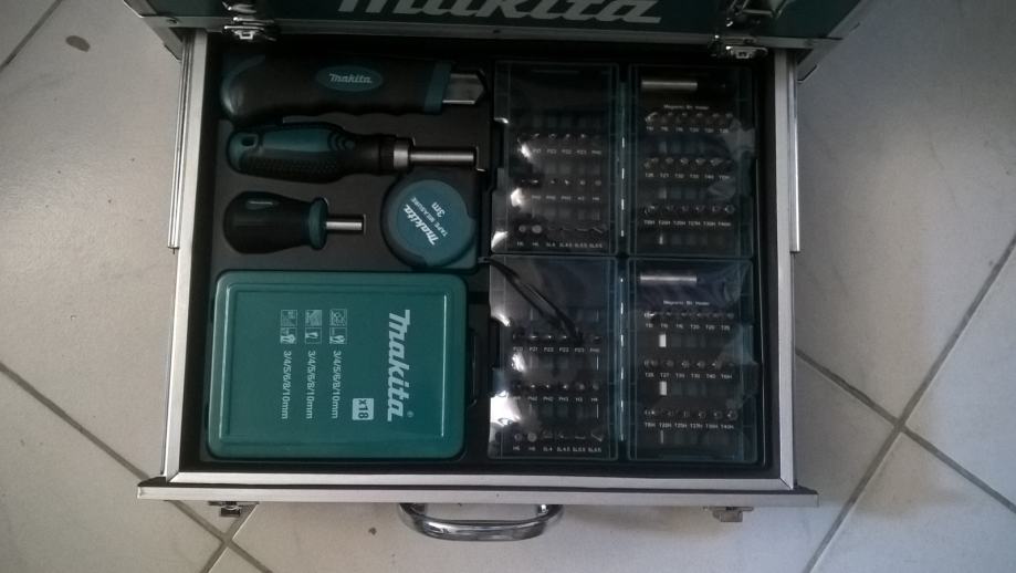 Komplet sa raznim Bitovima,metrom,rućnim nožem ručim izvijačem,Svrdlima za metal,drvo,beton 3-10mm znači za sve radnje.Pravi alat za majstore.Moj E-mail pel@gmx.de