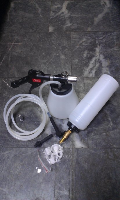 Prodajem komplet alata pumpica za zamjenu kočionog ulja u sistemu kočnica. Jedan je za upotrebu uz pritisak zraka iz kompresora a drugi je s ručnom pumpicom. Cijena je ista.