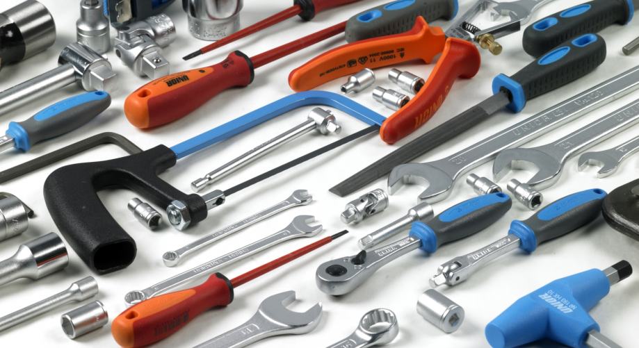 - alati za montažu i demontažu: ključevi, klješta, odvijači, čekići, bravarski škripci, turpije