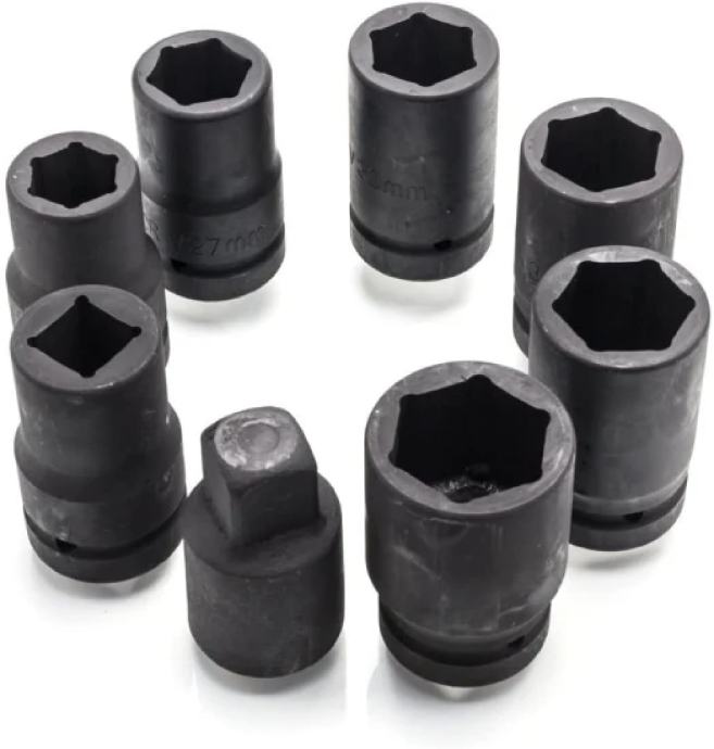 NAPOMENA,NA SLICI U KUTIJI DESNO JE ADAPTER SA 1"NA 3/4" .ON SE NE DOBIJE U KOMPLETU.KOMPLET SE SASTOJI OD 7 NASADNIH KLJČEVA I RUSKI KLJUČ.TAJ ADAPTER JE BIO U KOMPLETU KAD SU GEDORE BILE 3/4",A RUSKI KLJUČ 1" PRIHVAT.SAD SU GEDORE I RUSKI KLJUČ 1" PRIHVAT PA ADAPTER NE TREBA.
