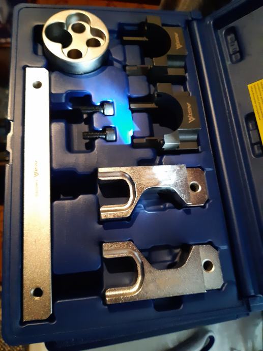Kompletan set alata priprema za distribuciju i izmjenu lanca razvoda za dizelske Mercedes-Benz motore 1.8 i 2.1 cdi s lancem OM651 . Kvalitetan specijalni alati za sigurnu izmjenu razvodnog lanca. Alat za blokadu i okretanje bregaste osovine i radilice.