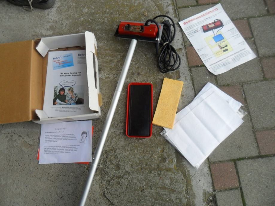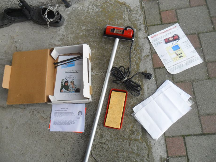 korišeno samo jednom da se isproba i dalje samo stoji,kupljen novi,grijač440w,ima dosta novih uložaka(krpa)koje se peru ili mijenjaju,original njemačke proizvodnje