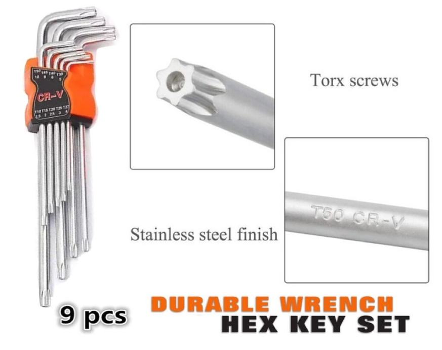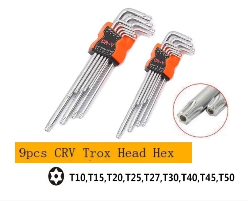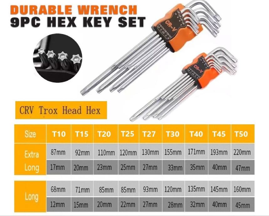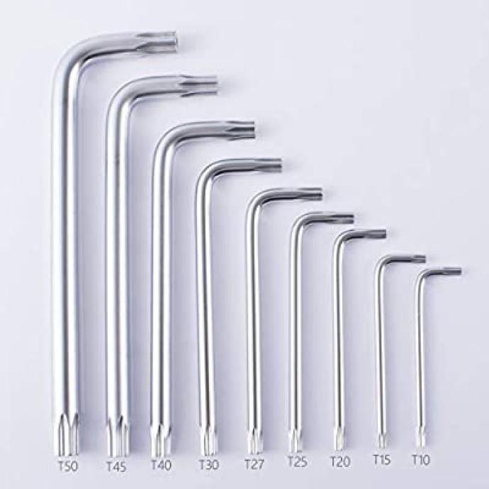 Veličina ključa od metričke zvijezde u 9 dijelova: T10, T15, T20, T25, T27, T30, T40, T45, T50.