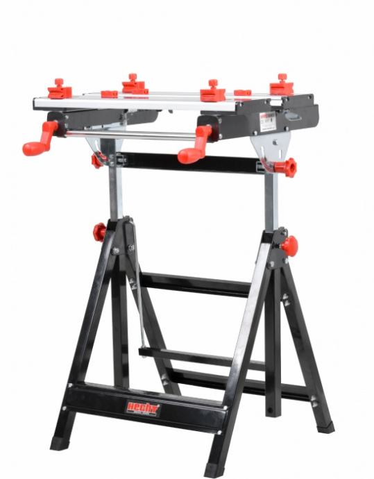 Hecht 0002 je idealan pomagač za svaku radionicu i kućanstvo. Zahvaljujući stabilnoj konstrukciji s izdržljivom radnom pločom od čelika i aluminija, s mogućnošću naginjanja i podešavanja visine u rasponu od 77 do 107 cm, uporaba ovoga stola je uistinu svestrana. Svaki materijal za bušenje, rezanje, slikanje, brušenje i slično lako se može stegnuti na stol.