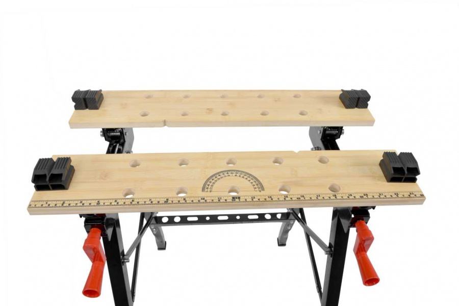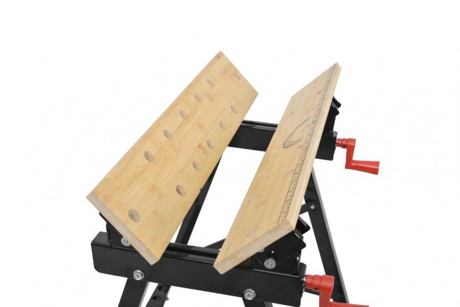 Spone se mogu učvrstiti u nekoliko položaja u pripremljenim rupama. Materijal se čvrsto pričvršćuje pomoću petlje i pričvršćuje se na stol. Stoga je stoga idealni pomagač, na primjer, kada radite na daskama, gredama,