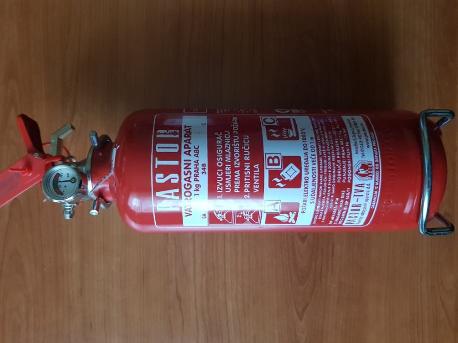 Vatrogasni aparat 1kg praha ABC za osobno vozilo sa nosačem za montažu.