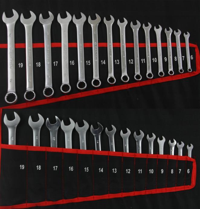 Zaštita od korozije. Set od 47 ključeva upakiran je u praktičnu torbicu na rolanje pa zauzima malo mjesta (kutija se pričvršćuje na čičak). Rupe u gornjim uglovima kućišta dopuštaju