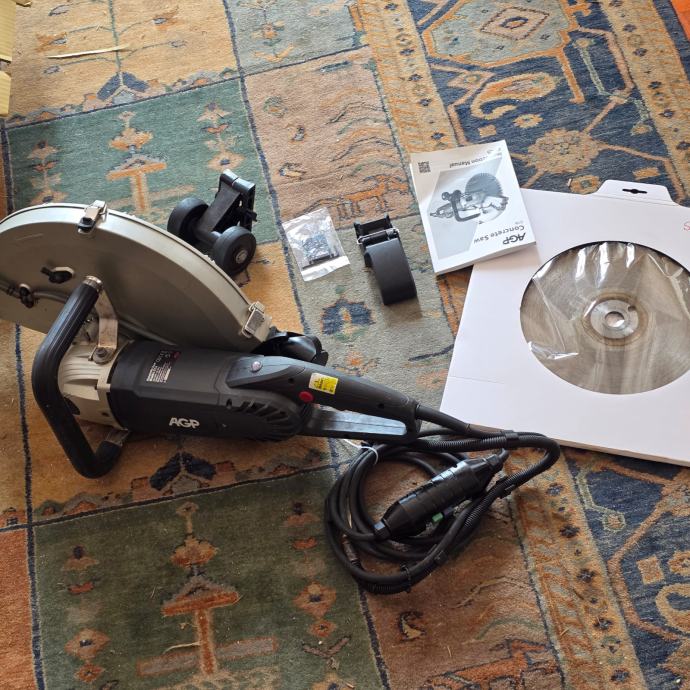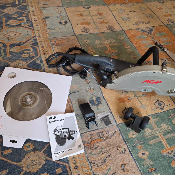 AGP C16 ima snagu od 3200W i maksimalnu dubinu reza 150 mm. Opremljena je LED indikatorom opterećenja (zeleno – normalan rad, crveno – visoko opterećenje), što je vrlo korisno u praksi. Također ima zaštitu od pregrijavanja, kao i priključak za usisavač za rad bez vode. Četkice su originalne, jedva korištene, a pristup im je jednostavan zahvaljujući praktičnim poklopcima.