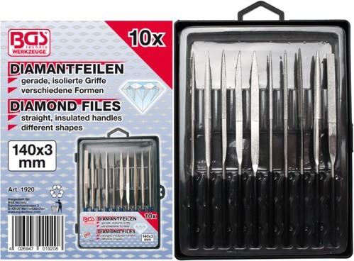 Set dijamantnih turpija | ravne | 140 x 3 mm | 10-dijelni izolirana drška