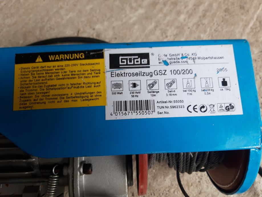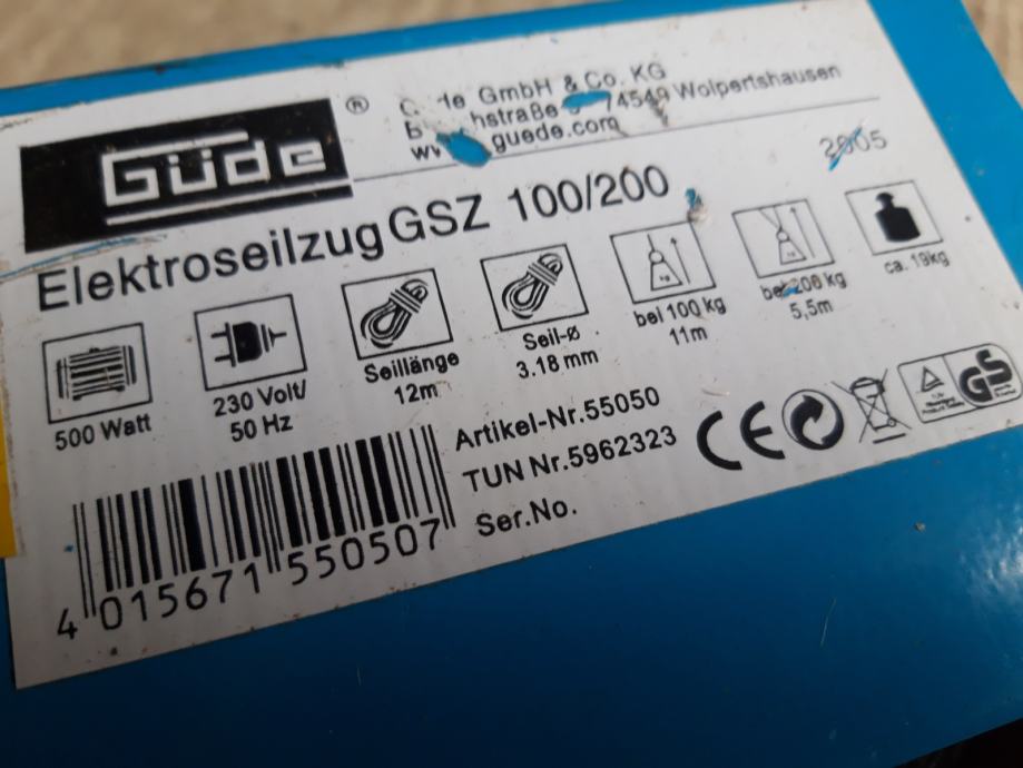 Njemačka dizalica GUDE GSZ 100 -200 kg, 1 sat rada. Cijena 80 eura. Mob 091 444 4281