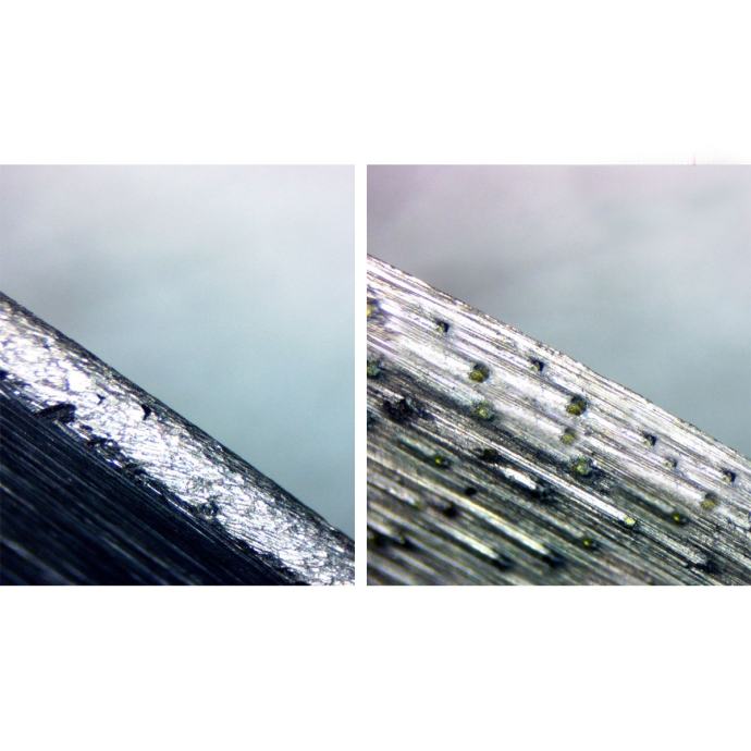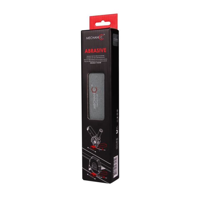 Svaka dijamantna oštrica može se otupiti i izgubiti svojstva rezanja. Posebno se često javlja pri rezanju neabrazivnih čvrstih, viskoznih materijala kao što su porculanski gres, mramor, neabrazivna keramika itd. Dijamantna zrnca se uništavaju i ispadaju, obrađeni materijal se zalijepio za površinu spoja. Temperatura raste u kontaktnoj točki, kvaliteta rezanja se smanjuje i oštrica se zaustavlja. Postoji opasnost od oštećenja alata. Oštriti znači napraviti nekoliko rezova na abrazivnom materijalu. Mechanic ABRASIVE savršeno odgovara za oštrenje dijamantnih oštrica. Pravilno kombinira veličinu i snagu abrazivnih zrnaca, posebno odabranih za oštrenje dijamantnog alata. Da biste to učinili - napravite nekoliko uzdužnih rezova s dosadnim dijamantnim slojem. Oštrica kutne brusilice pravi rezove dubine do 5 mm. Isto treba učiniti s oštricama za rezač keramičkih pločica dubine do 10 mm. Što je oštrica tuplja, potrebno je napraviti više rezova. Potrebno je do 10-15 rezova da vaša oštrica ponovno postane oštra. Veličina brusa je 250*50*25 mm. Preporuča se uhvatiti šipku stezaljkom tijekom rezanja kutnom brusilicom. https://www.youtube.com/watch?v=x_jWXtod5p8