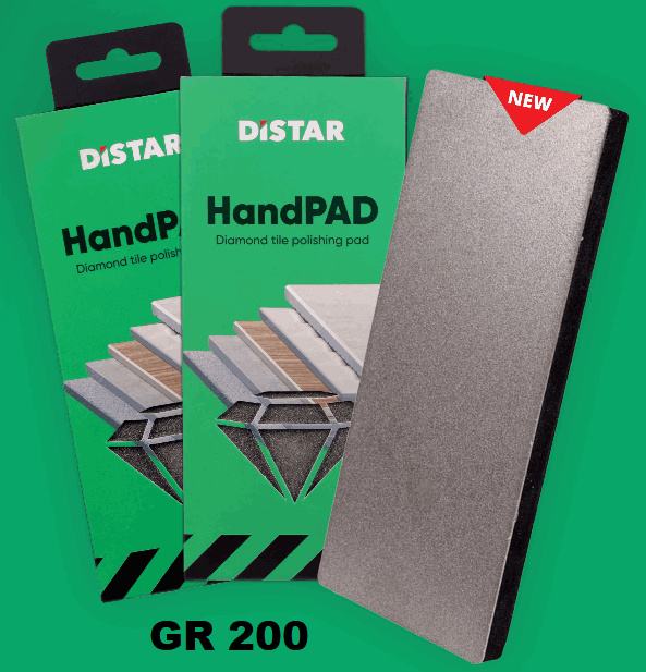 Hand Pad gr200 Ručno brušenje keramičkih pločica. HandPad je praktičan alat za obradu keramičkih pločica, opremljen krutom dijamantnom pločom koja brzo uklanja neravnine. Dostupan u tri razine granulacije: #1 (60), #2 (200) i #3 (400), s mekanom podlogom za udoban hvat tijekom uporabe. Pravokutni oblik i kontinuirana dijamantna prevlaka omogućuju poliranje čak i u teško dostupnim područjima.