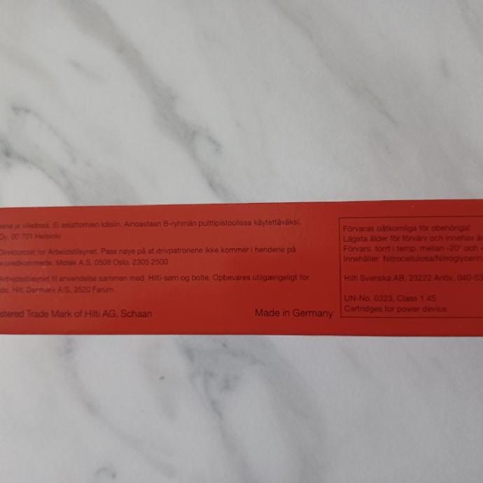 Kartuša Clean-Tec u traci za upotrebu sa strojevima za pričvršćivanje na barutni pogon.