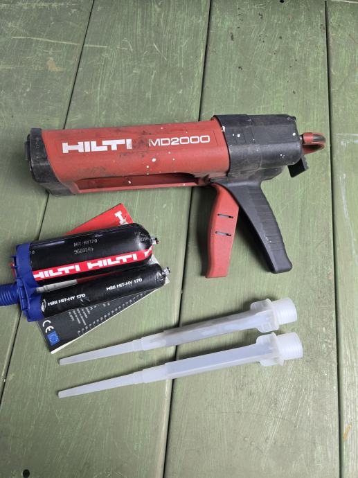 HILTI MD2000 pištolj za tiskanje građevinskog EPOXY-ja, dvije tube za miješanje i jedno HIT-HY170 kemijsko sidro.