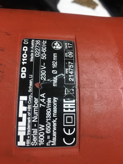 Prodajem rabljenu Hilti DD110-D bušilicu za bušenje sa krunama, profesionalni alat poznatog proizvođača. Idealna je za zahtjevne građevinske poslove i bušenje kroz tvrde materijale. Stroj je korišten ali u funkcionalnom stanju, spreman za nastavak rada na gradilištu.