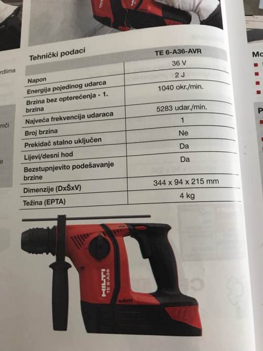 HILTI TE 6 - A36 Aku udarna bušilica sa usisavačem.