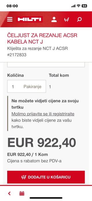Hilti NUN 54-22 aku alat za krimpanje(sječenje kablova)sa baterijom i punjačem 999 €