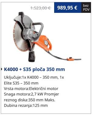 Ovaj svestran električni rezač smanjuje količinu korištenja vode i stvaranja mulja. Za razliku od ostalih električnih rezača, oštrica se okreće naprijed, učinkovito rezanje u materijal s minimalnim naporom za operatera.K 4000 je lako prilagodljiv za suho rezanje s mogućnošću instaliranja usisavanja za stvaranje minimalnih količina prašine.